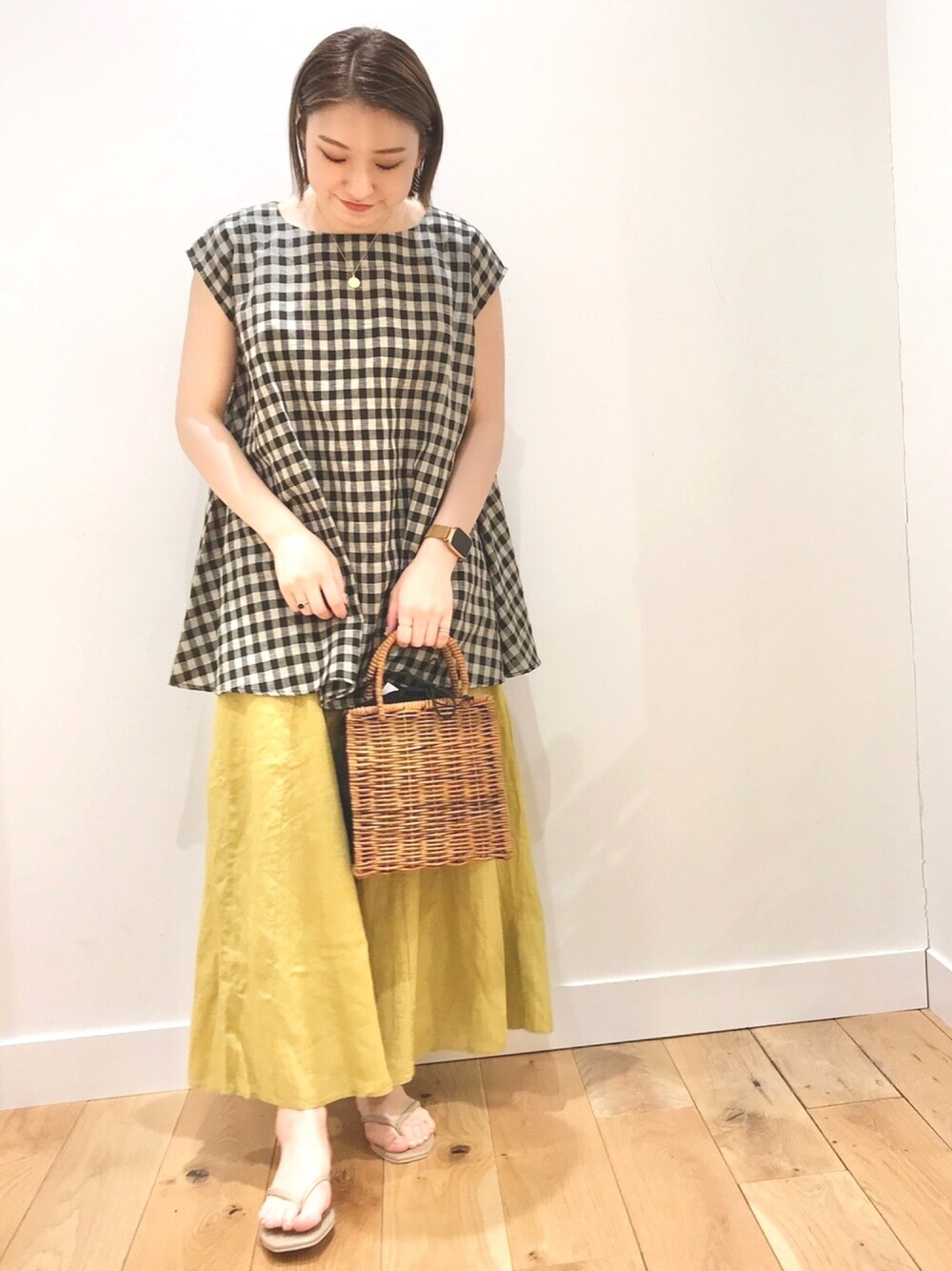 amoのシャツ/ブラウス「リネン混ギンガムチェックノースリーブブラウス」を使ったコーディネート