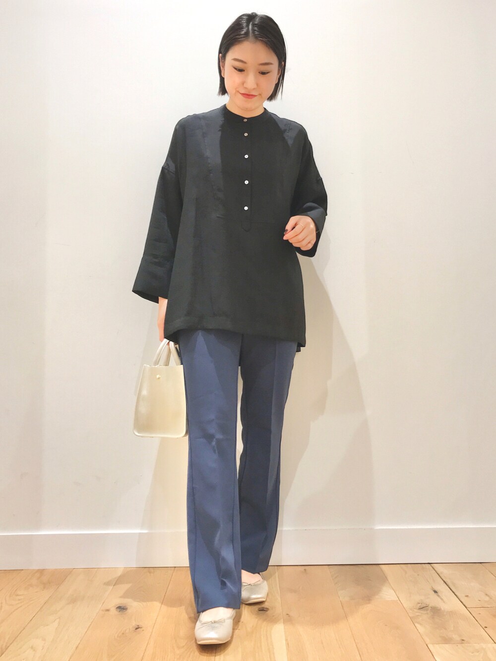 amoのTシャツ/カットソー「フロントデザインドルマンブラウス」を使ったコーディネート