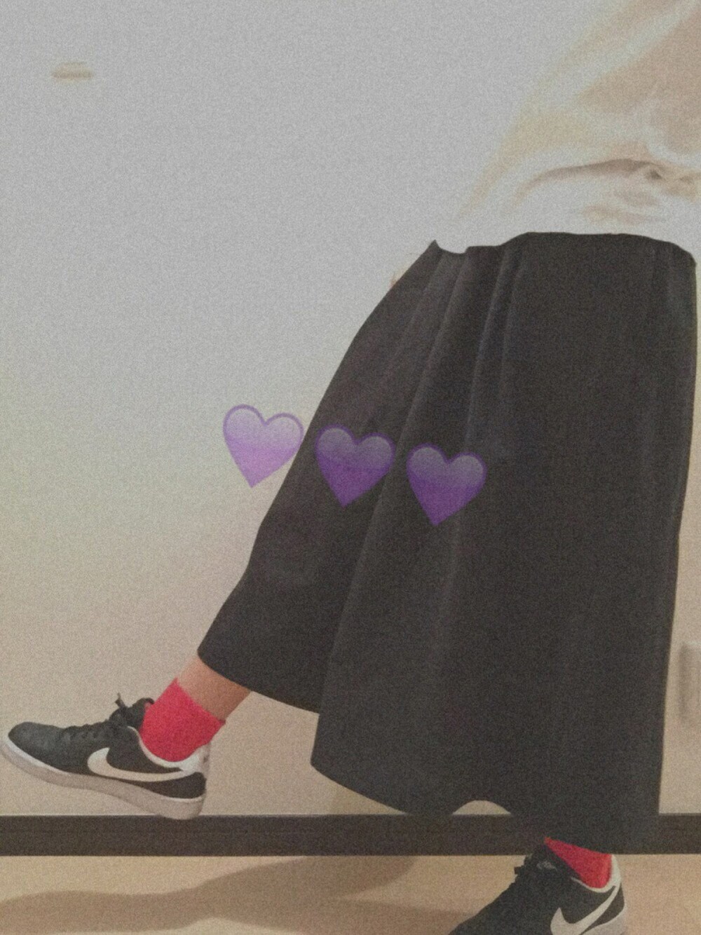 セールで1500円でゲットしたガウチョおろした🎌💯💯 生地しっかりしててシルエットも可愛い🌷 お気に入りのユニクロさん合わせてモノトーン×赤🌹♨️ 最強可愛いね( ^_^)/~~~❤︎