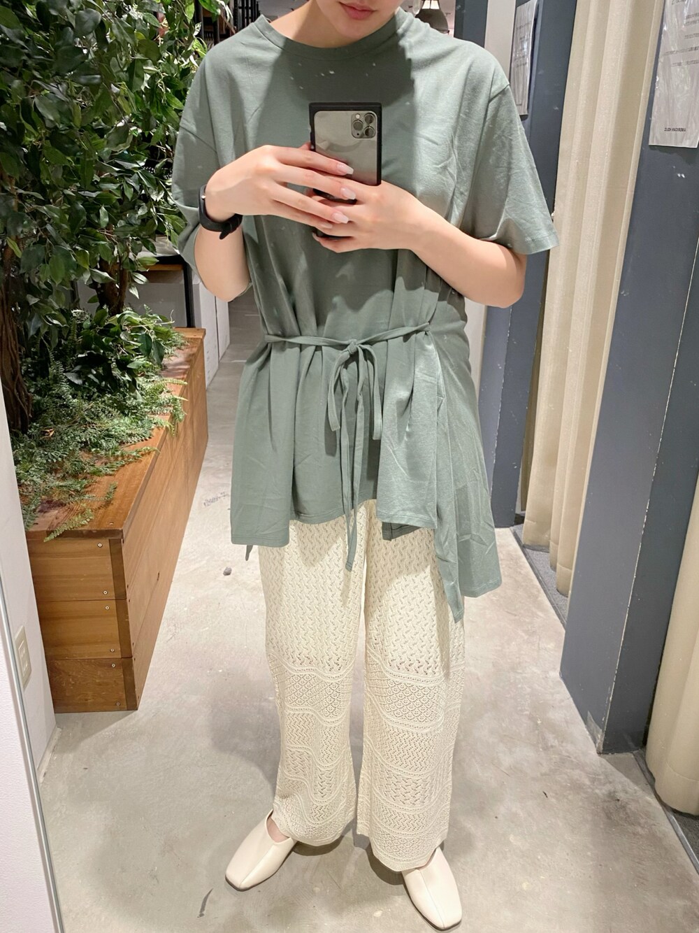rihoのその他パンツ「透かしレース編みワイドパンツ」を使ったコーディネート