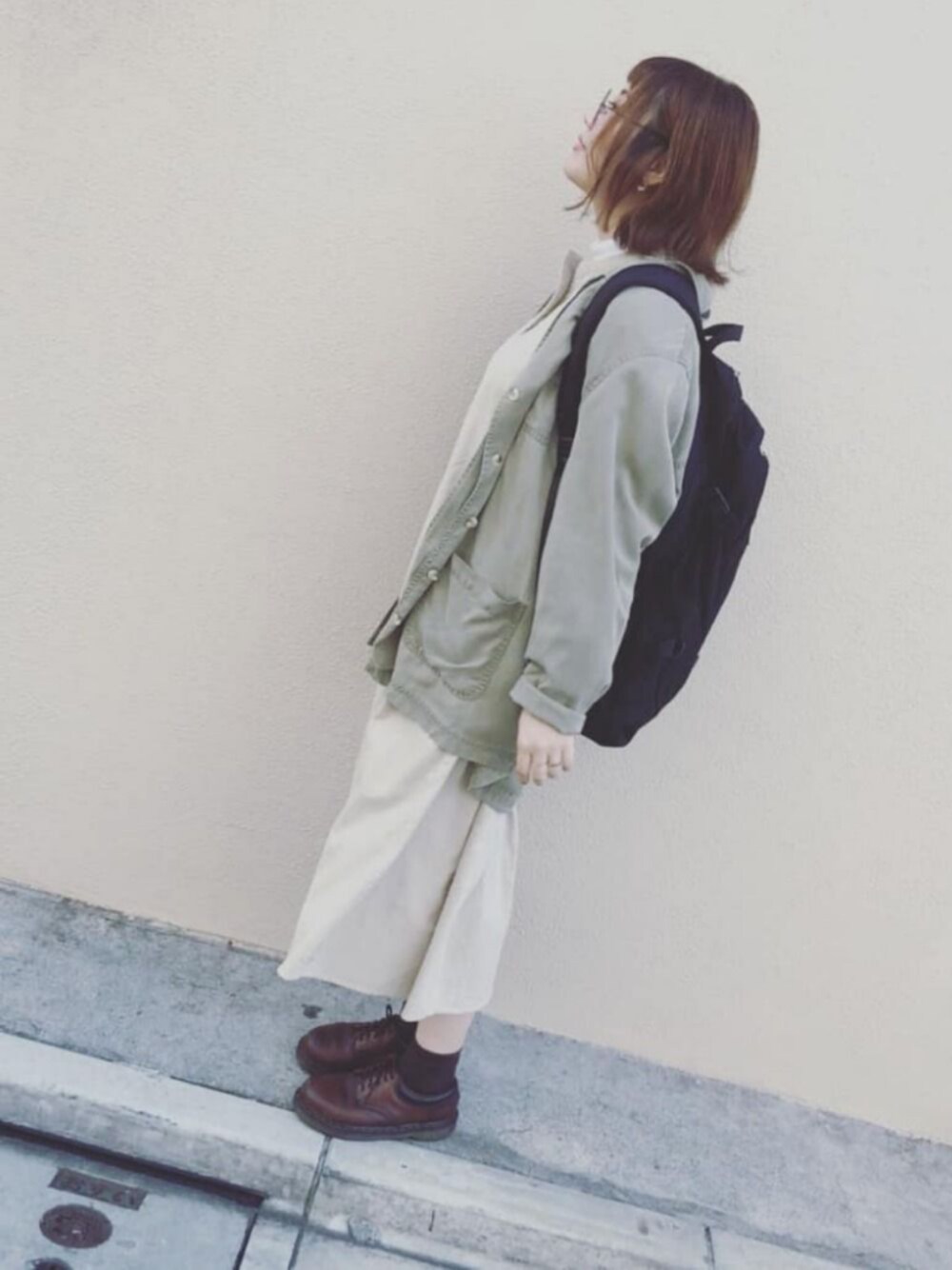 雑誌のイベントのコーデです。 ニコアンドのワンピースをやっと切れました! 全て淡い色で統一したのと、足元に靴下と靴でブラウンの濃い色を持ってきたところがポイントです!! あとは、ワンピース自体が淡くぼやけているの上はメガネでこなれ感をさらにプラスしました!!