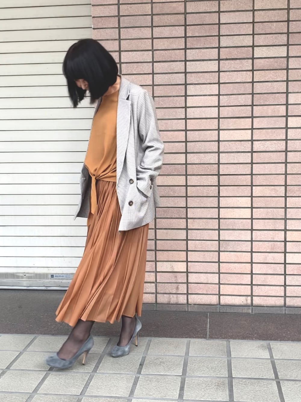jacket:30-02-21-611 ¥33000 blouse:10-02-01-028 ¥18700 skirt:30-02-08-601 ¥22000
