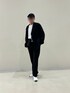Ryのスラックス「Tailored flared pants/テーラード ブーツカット タック フレアパンツ/カラーパンツ」を使ったコーディネート