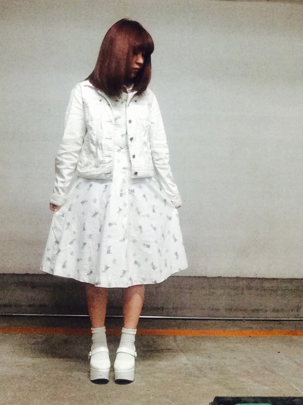 オール古着のオール白 コーデです(´-`).。oO( パンプスはゆらちゃんの私物 販売で手に入れたぜぐへへ