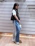 るりこ(LOWRYS FARM 神戸三田プレミアムアウトレット)のデニムパンツ「スウェットキリカエデニムパンツ 128601」を使ったコーディネート