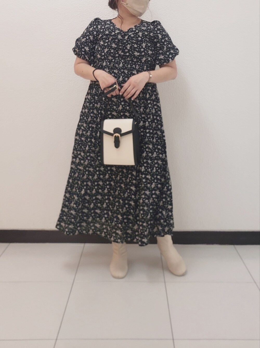 夏まで使える花柄ワンピース♡ 腰の切り替え位置が高めなので、アウター選びやトップス重ね着もしやすいです🌷 スカート部分はプリーツで大人見えします。