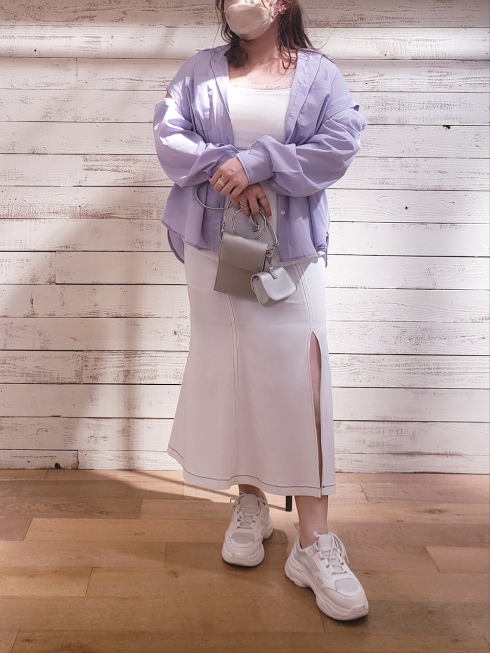 ru74olive(OLIVE des OLIVE 横浜ジョイナス)のスカート「ベルト付きスリットマーメイドスカート」を使ったコーディネート