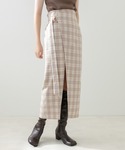 巻きスカート風なデザインがオシャレなスカート🌼 Dカンベルがアクセント◎ 先取りの秋色チェックも新鮮でおすすめです♪