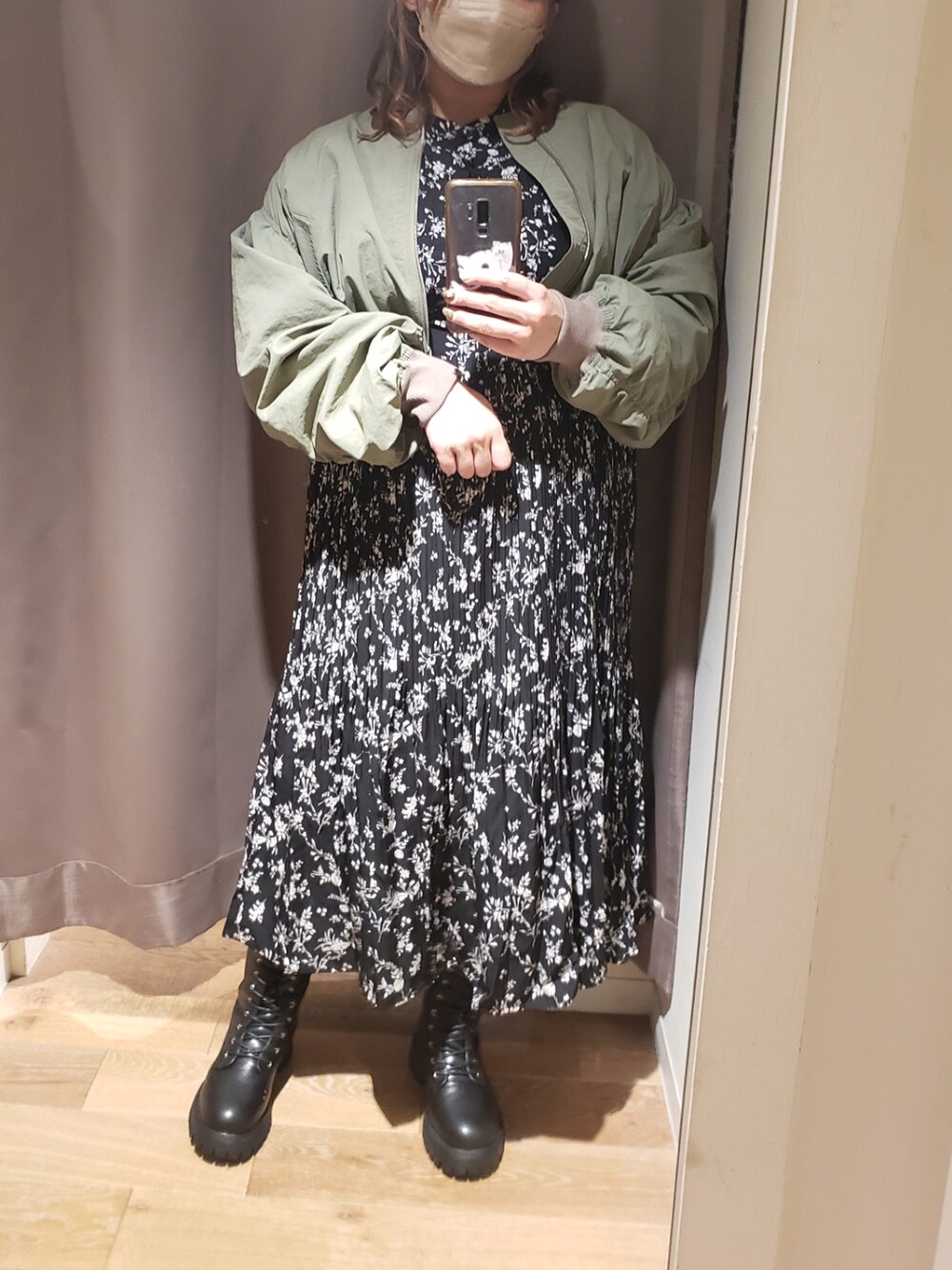 くしゅくしゅしたボリューム袖が可愛いブルゾン合わせです🍀 フェミニンワンピもカジュアルダウン出来る、着まわしブルゾン♪