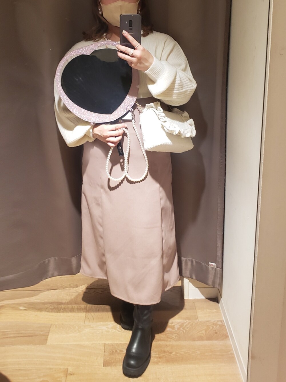 パールショルダー付きのうちわケースは、持つだけでコーデアクセントになります✨ ライブで目立てること間違いなし♪ 韓流などの少し大きめうちわも入るサイズです!