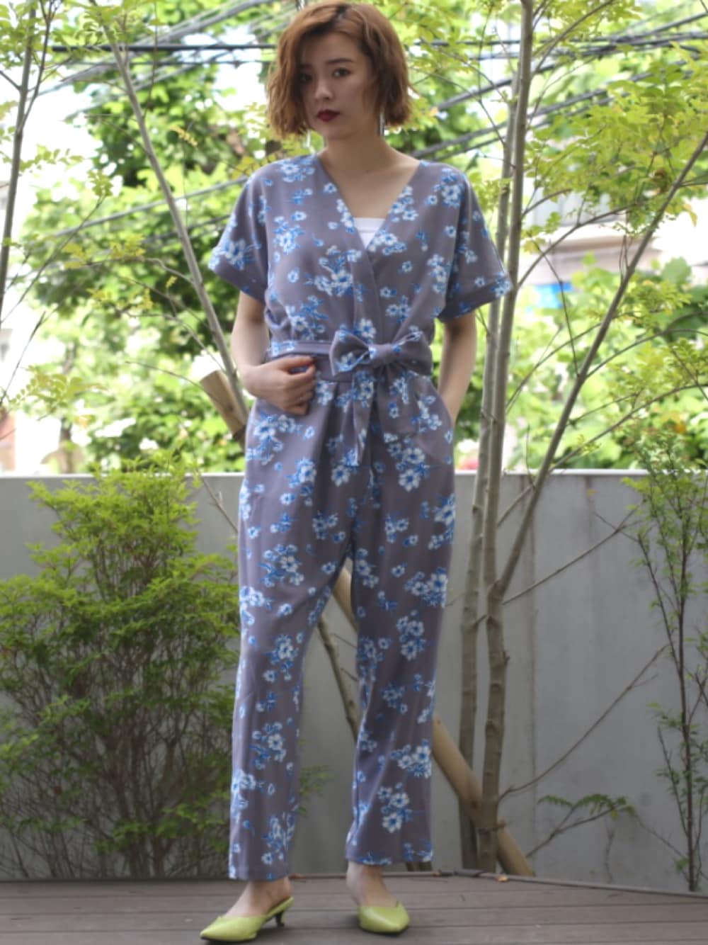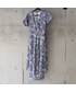 rubiaオリジナルデザインオールインワン グレーにブルーフラワーがとても綺麗な発色 かなり珍しい色合いでそれが気に入り生地を選びました 人とカブらない、デザイン、カラーがお好みの方にオススメです デザインは、カジュアル感を出すため少しサルエルっぽくしてます そして、ピップラインをあえて大きめにして下着ラインなどが気にならないようにしてます フロントのカシュクールがスッキリとしたデコルテラインにしてくれます バックの背中の開きで大人のシルエット、脱ぎ着しやすいよう考慮して作りました 年代も関係なく使えるようにデザインいたしました カジュアルにもフォーマル、結婚式やパーティーにも活躍する1枚です 丁寧に生産された世界に1つだけのデザインのオールインワン