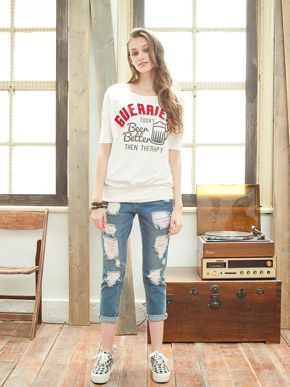 RUBONのその他トップス「短T-清爽BEER休閒連帽女上衣」を使ったコーディネート