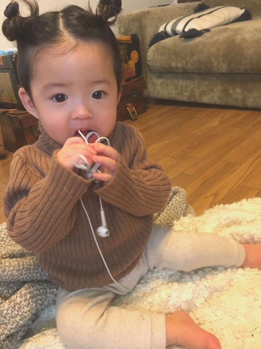 ハイネックにスエット ラフで可愛い❤︎もうすぐ歩きそう~