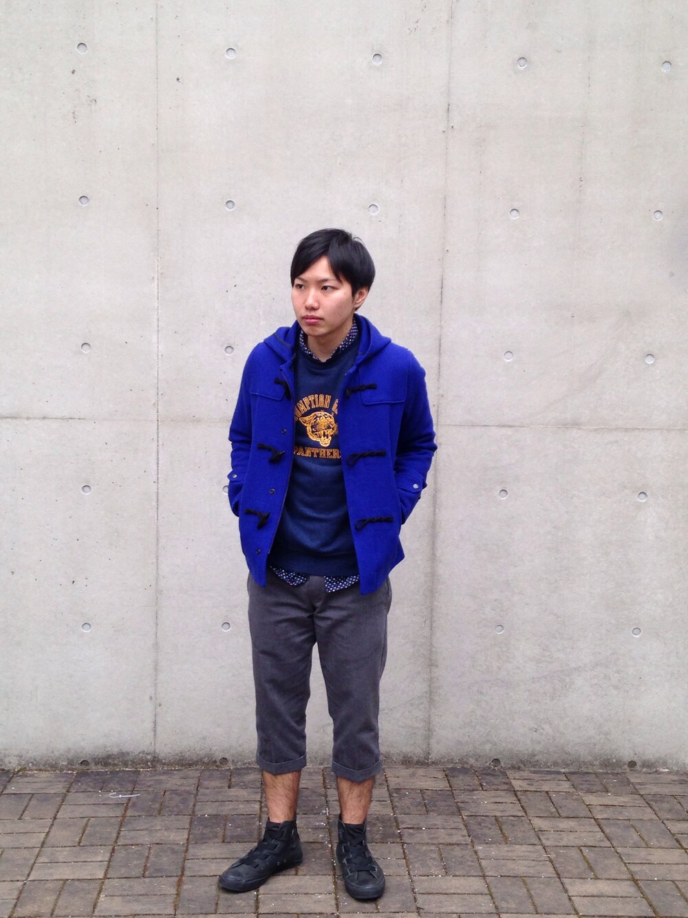 ブラック系のスニーカーを着用したメンズの冬コーディネートの1枚目の写真