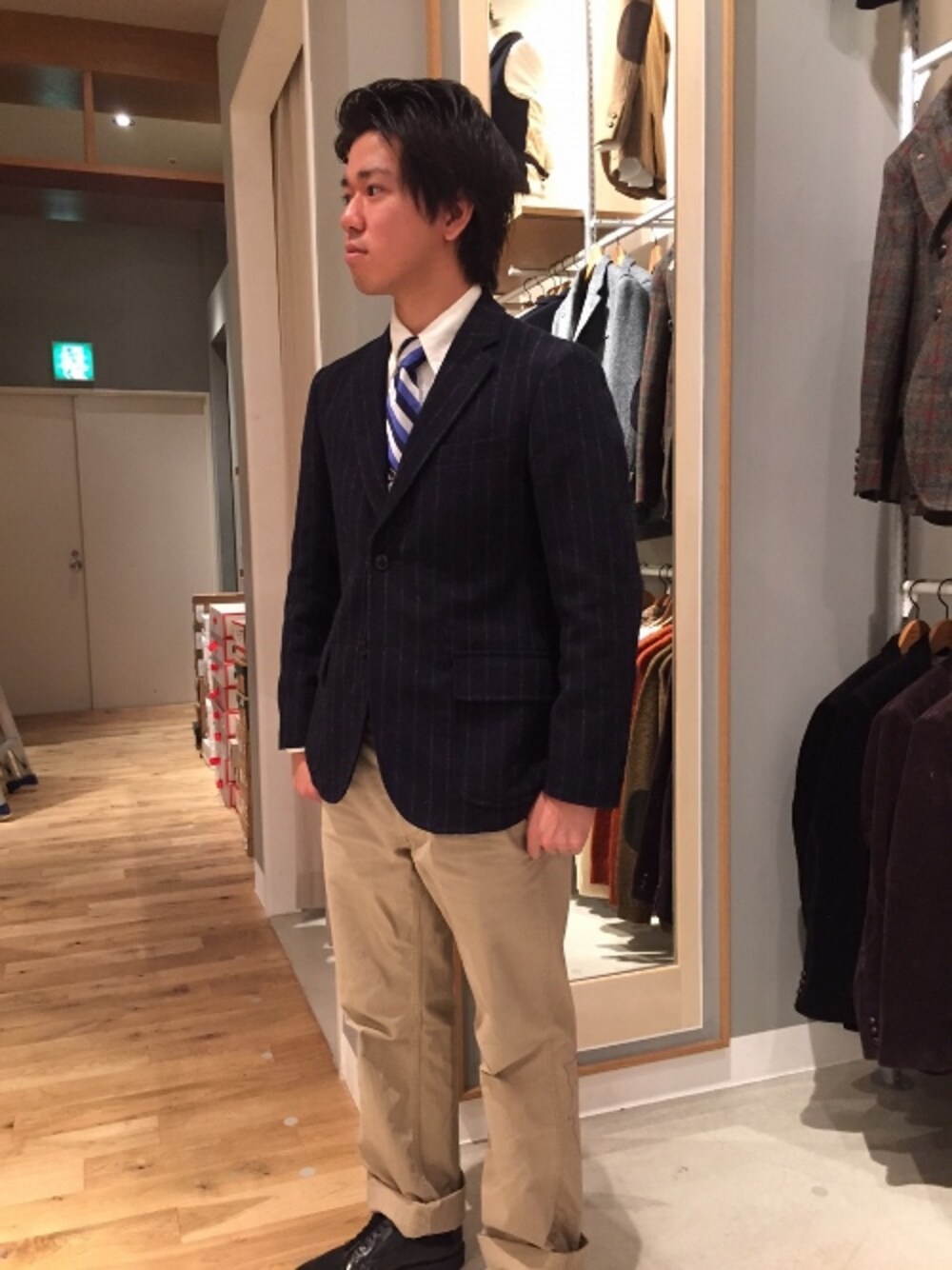 タイドアップしたツイードのジャケットスタイルをゆとり感のあるチノーズでカジュアルダウン。