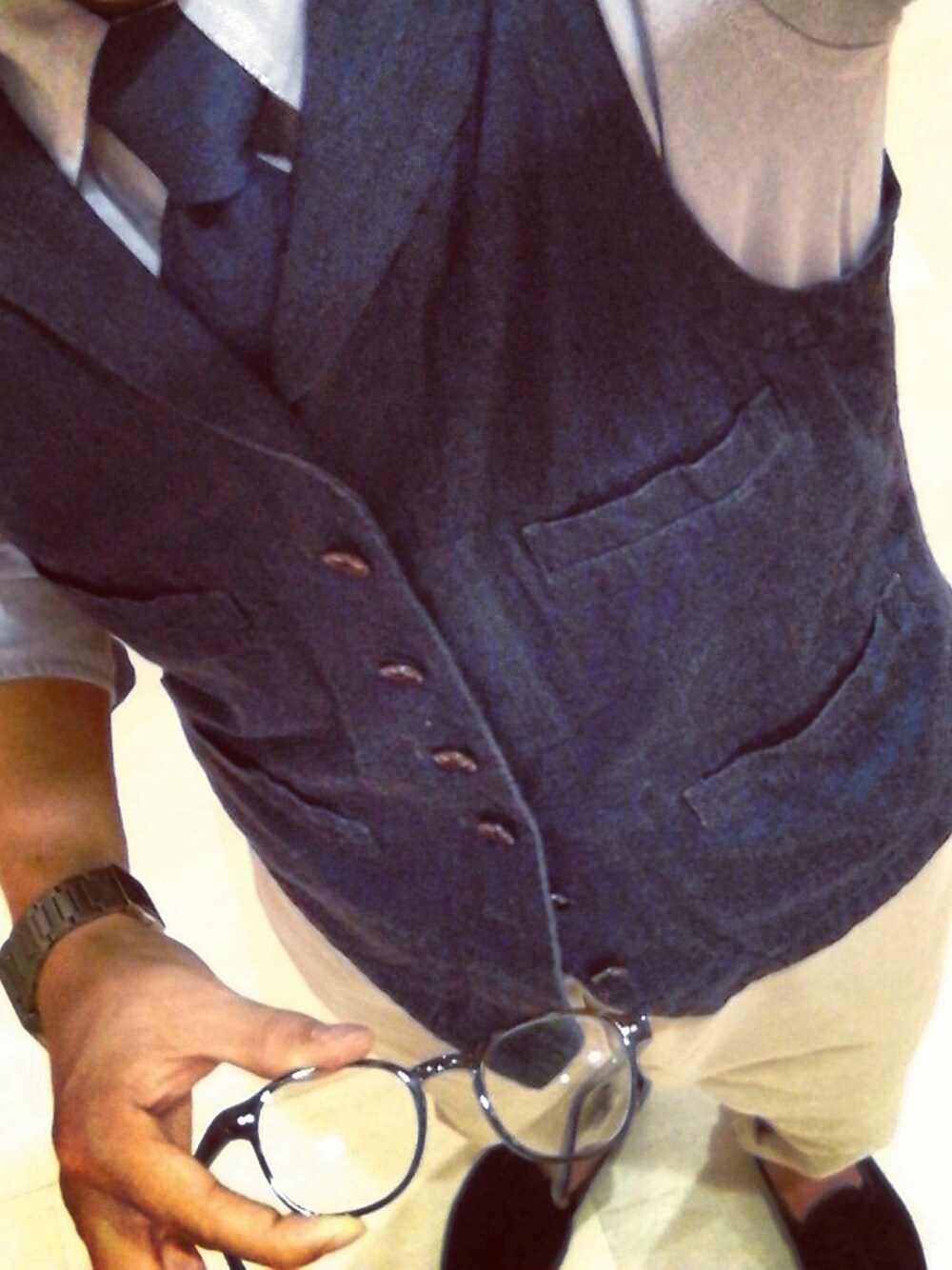 vest nigelcabourn shirt blooksbrothers pants WESTERNER shoes alden tie nigelcabourn grasses MOSCOT