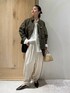 【コットンワークブルゾン】 ブルゾン×キルティングベストのレイヤードが楽しめる1着で、中綿キルティングベストはブルゾンの上にもインナーとしても着用可能です◯ ゴールドのボタンが高級感を演出、衿には同色系のサテンを使用しておりポイントになります。 製品洗いを施し独特の風合いや色落ちを出し、ヴィンテージ感が素敵です! ご自宅でお手入れが可能です。 【ビックシャツ】 コットン100%の柔らかいお素材で着心地が良く、ややハリ感のあるお素材でお上品な雰囲気に。 腰回りまですっぽり隠れる少しメンズライクなシルエット、かつ女性らしいサイジング。 袖口と襟裏の刺繍ロゴがポイントデザインです◎ 【サテンタックパンツ】 フランスのミリタリーからインスピレーションを得た、多数のタックと変形の裾すぼまりシルエットです。 裾タブで裾を絞ったスタイリングにも。 肌触りが滑らかなキュプラ混のウォッシュ加工サテン生地を使用しており、マット光沢感が素敵です。 華やかさとリラクシーさを兼ね備えた1着です✨ 商品につきましてお気軽にお問合せください ルミネ1新宿店 ℡ 03-5989-0533 Instagram ⇩使用アイテムはこちら