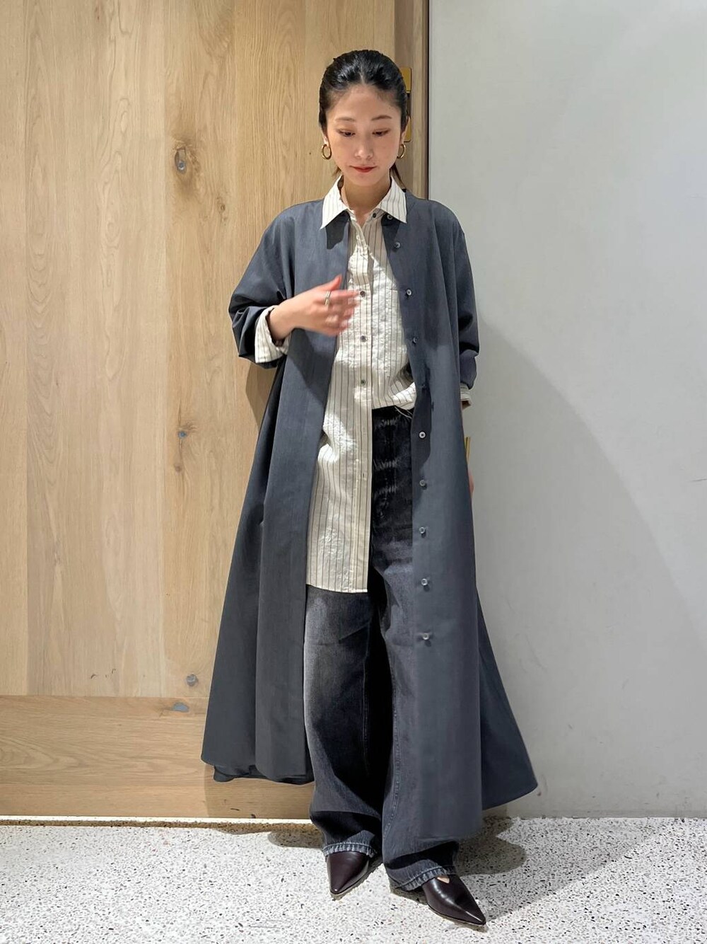 【ウールバンドカラーワンピース】 ゆるやかなAラインで、丈もしっかり長めなデザインです。 モヘア混の梳毛糸を使用したハリのある素材で、シャープな印象に。 ワンピースとしても、前を全て開けてコートとしてもご着用頂けます◯ 【ワッシャーストライプシャツ】 トルコのメーカーACARによるアイテムで、上品な光沢と、タンブラー加工の落ち感でリラックス感があります。 総丈長めでニットやジャケットとのレイヤードもオススメです! 【ワイドルーズデニム】 ワイドシルエットなのにすっきり見える、名品デニム ・ハイウエスト×深めの股上で、美脚効果抜群 ・重厚感のある素材でルーズになりすぎない ・サイズをややコンパクトに選ぶと、キレイメにも◎ ✔︎ラフなのに上品。一本あると着回しの幅がぐんと広がります。 商品につきましてお気軽にお問合せください ルミネ1新宿店 ℡ 03-5989-0533 Instagram ⇩使用アイテムはこちら