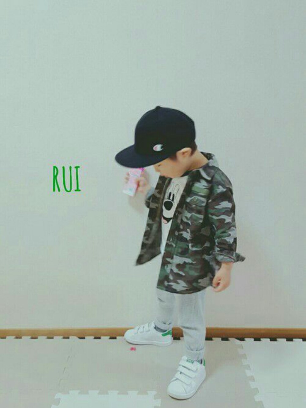 るいちゅうのスニーカー「ベビー キッズ アディダス スタンスミス ベルクロ adidas STAN SMITH CF I M20609」を使ったコーディネート