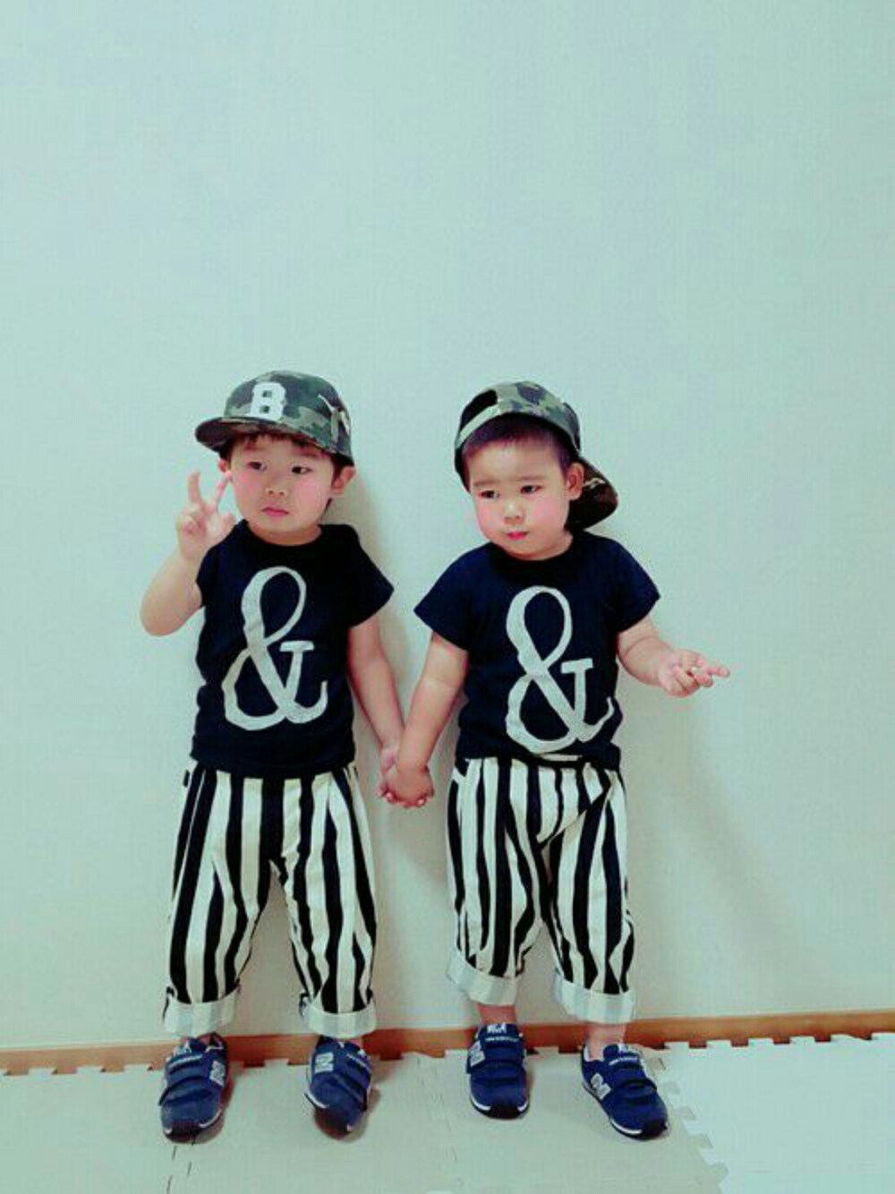 久々の仲良しそうちゃんと双子コーデ♥ ストライプのパンツはそうちゃんばーばがお揃いで作ってくれたよ♪ あー楽しかった😍 M家love♥