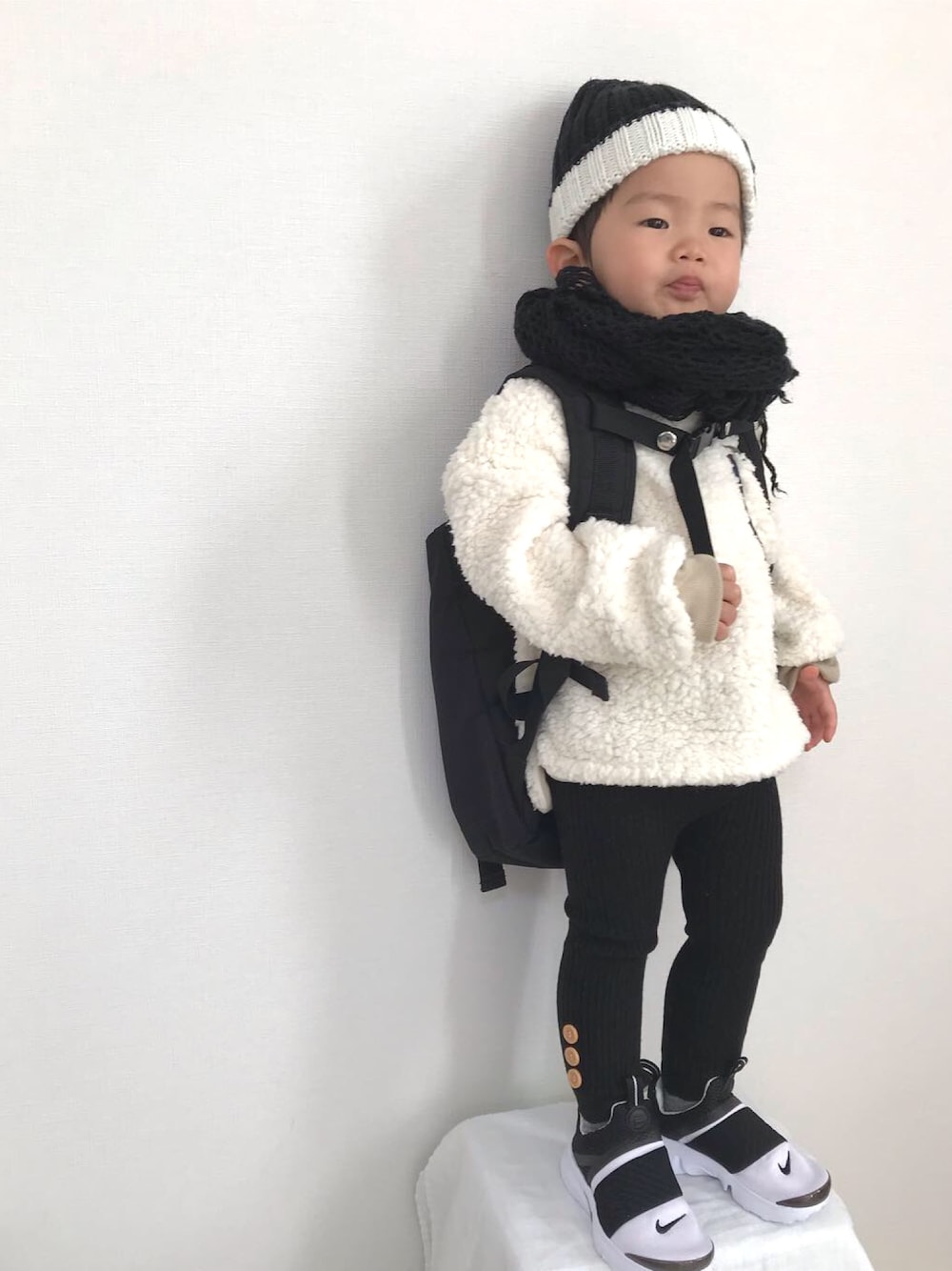 ふわふわもこもこ羊さんの日🐏 めっちゃかわいいねんけど、これで公園行ったら落ち葉やら草やらいっぱい付いてきた🍁🍂服選び間違えた😇