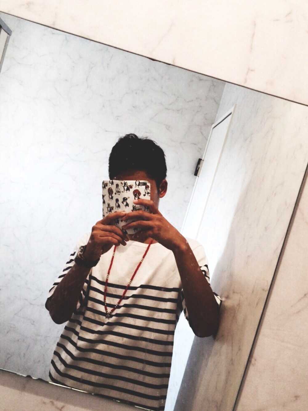 休日の午後。 Tシャツはワンサイズ大きめ。