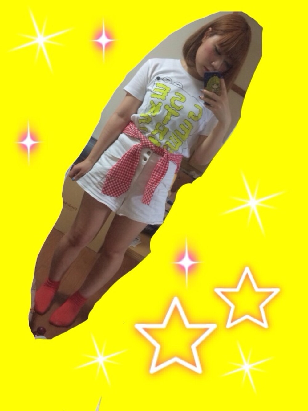 GEEKSTREEKSというバンドのTシャツがポップで可愛かったので、即買い。 ホワイトコーデを赤のギンガムチェックシャツで引き締め。
