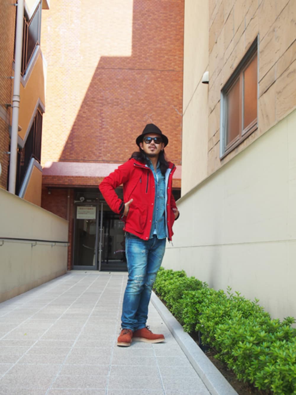 rumbleFISHSTAFFのマウンテンパーカー「BACK BONE THE BASIS GORE-TEX 3L Storm Jacket Red」を使ったコーディネート