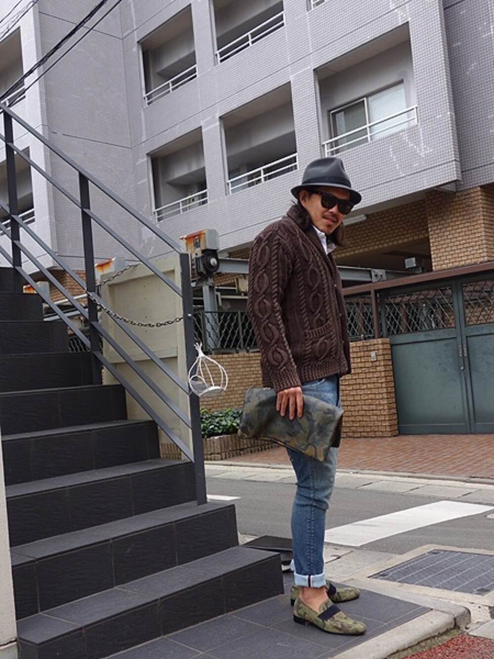 ニット、シャツ、パンツ、ハット、ローファー全てjunhashimoto クラッチバッグ:HTC
