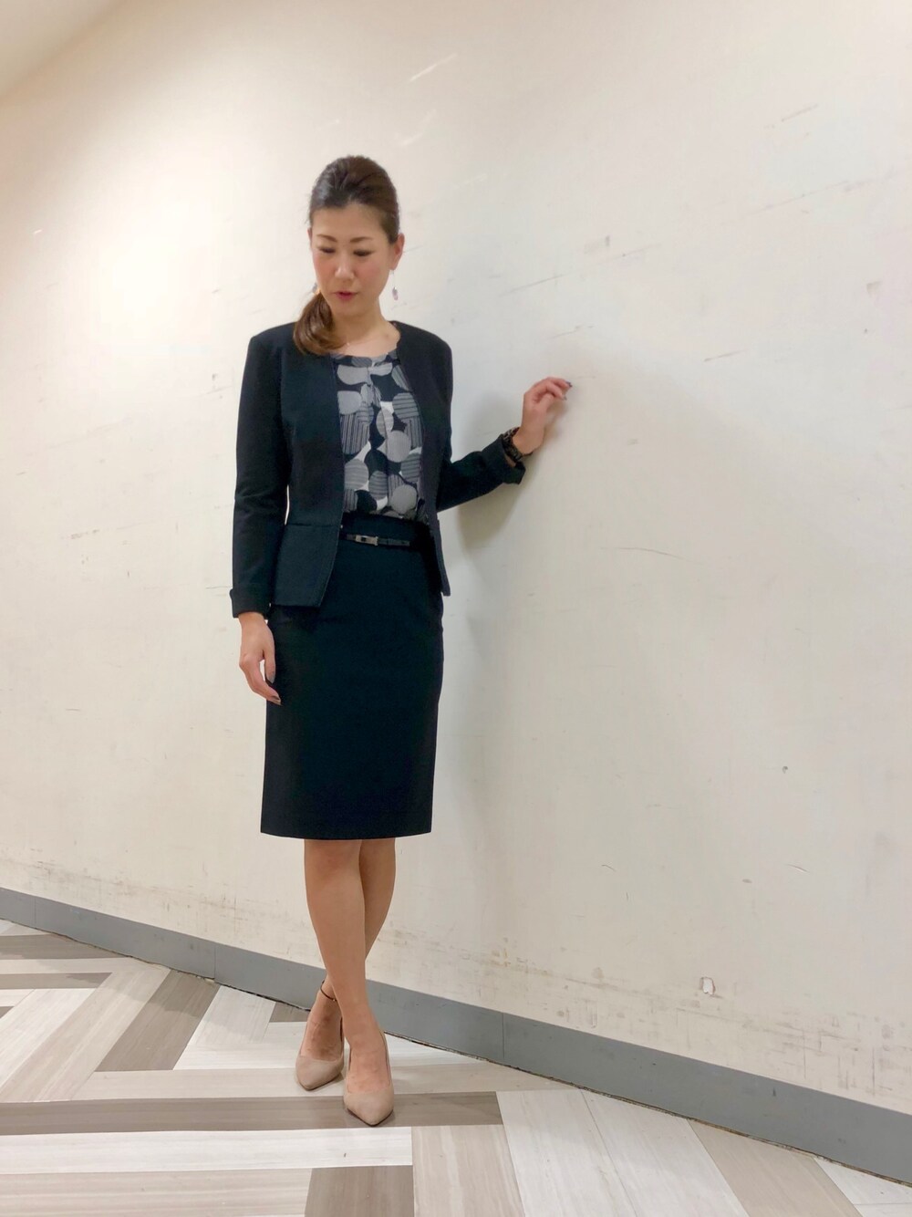 Francescaのスーツスカート「【セットアップスーツ対応】パールジャージサイド切り替えタイトスカート」を使ったコーディネート