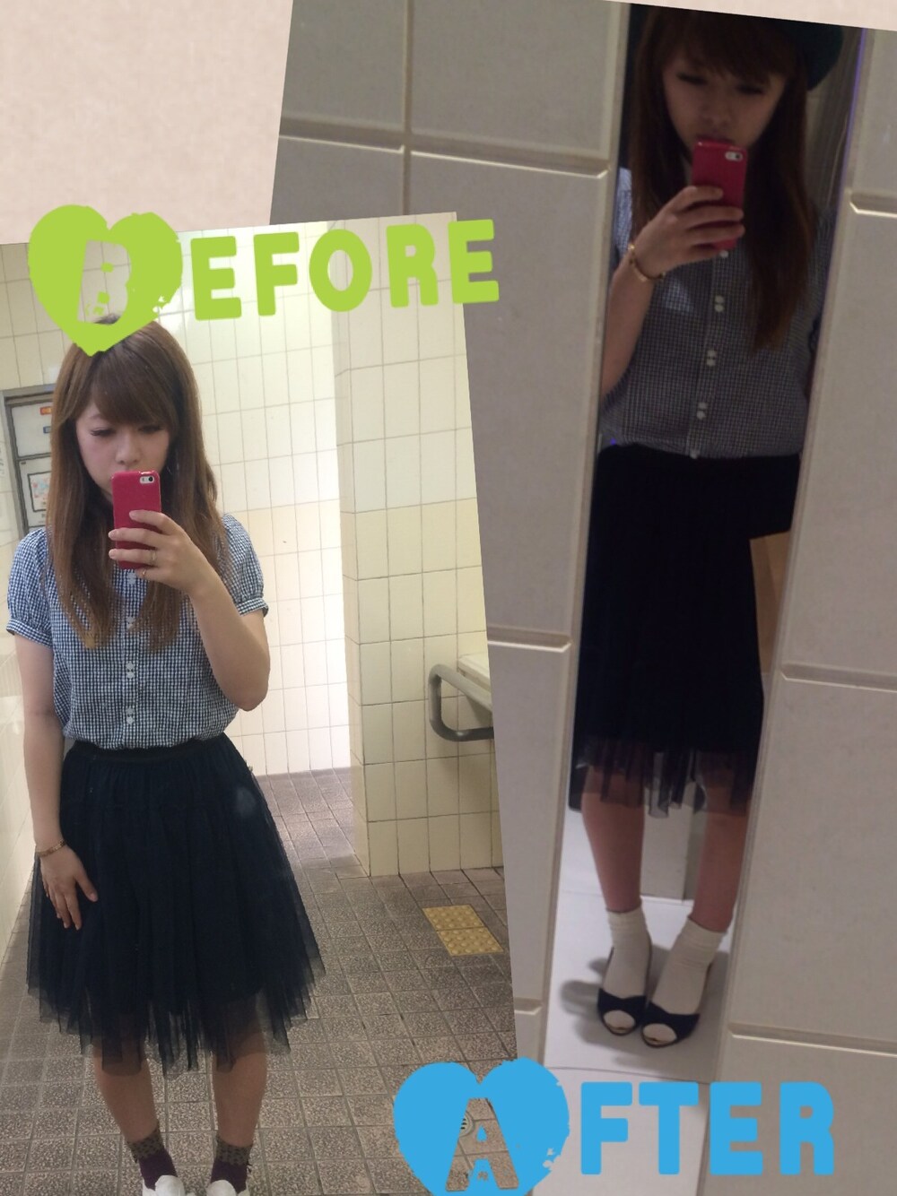 駅のトイレで… 帽子かぶりたかった(´・_・`) ★After やっぱり帽子かぶりたかったので plus靴下と靴も変えた♡