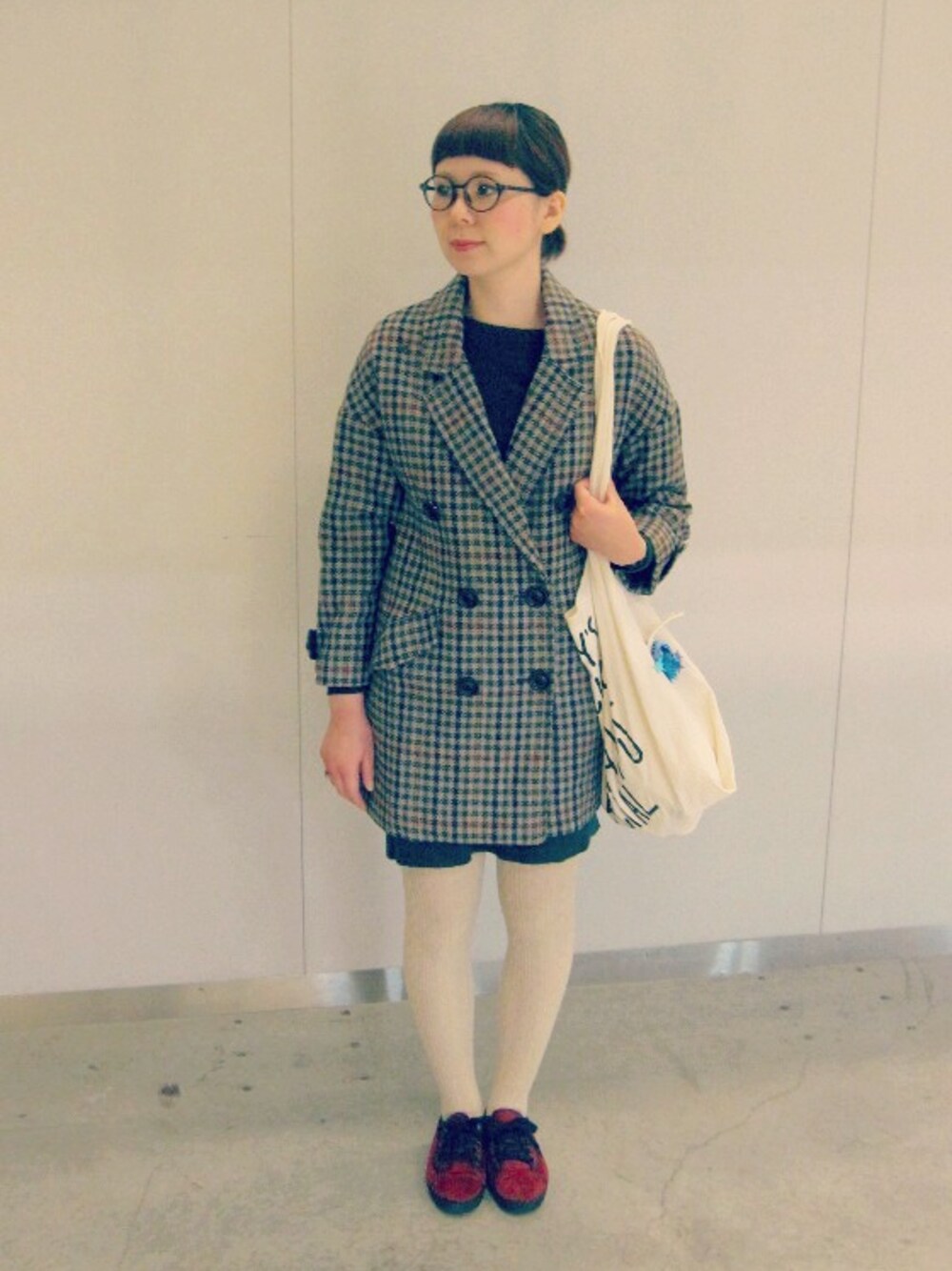 チェックコート…dot&stripe ニットワンピース…bulle de savon 丸めがね…URBAN RESEARCH DOORS