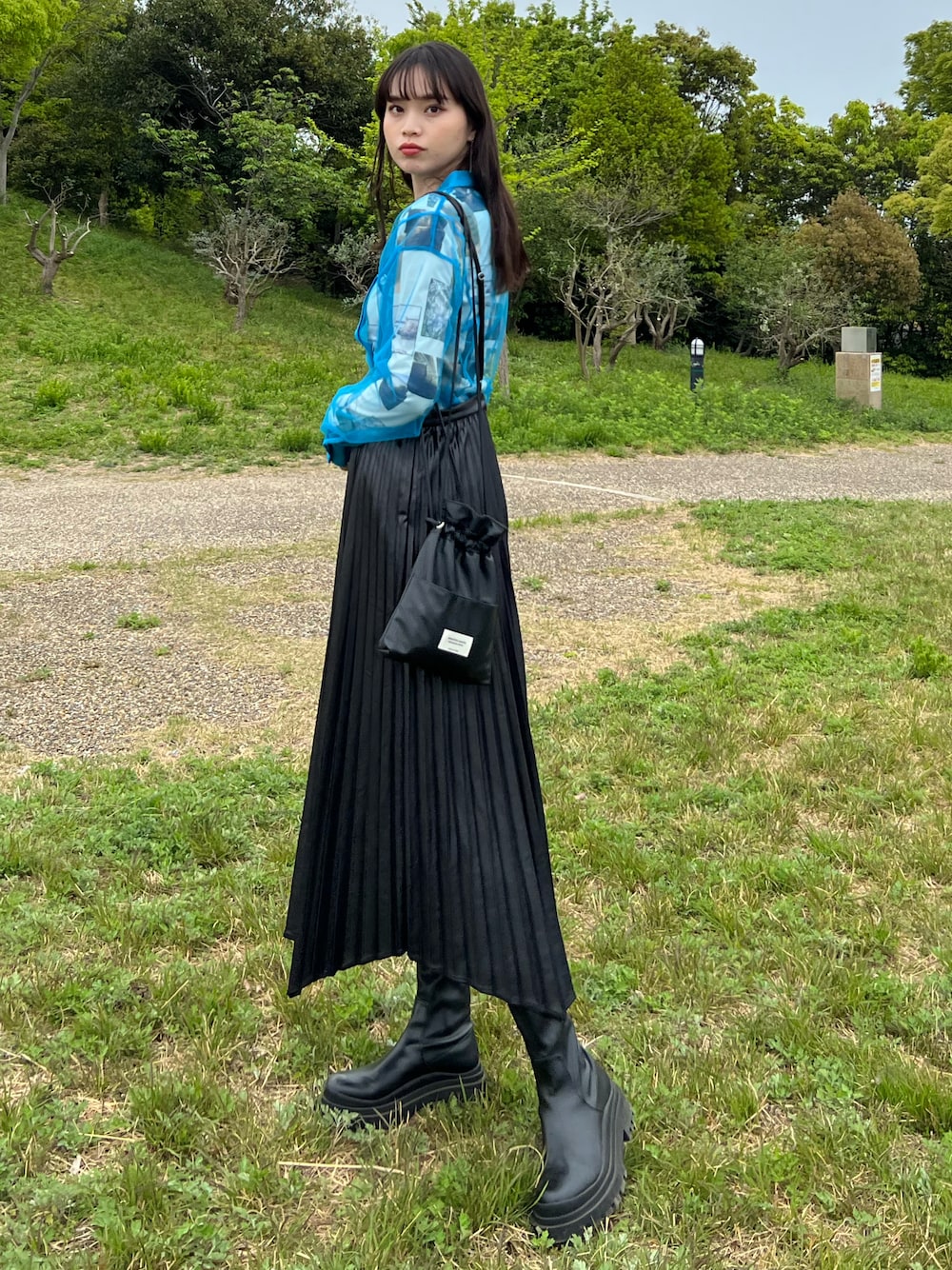 rumikaのスカート「フェイクレザープリーツスカート」を使ったコーディネート