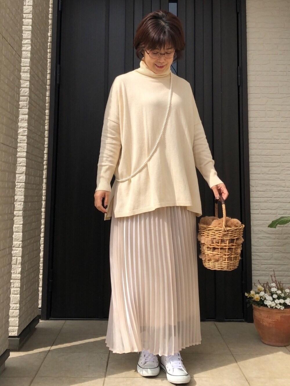 kamokamosanのニット/セーター「ウールカシミヤワイドタートル」を使ったコーディネート