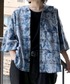 ジエダのジャージにブリーチが全体にかかったチェックシャツ、全身ブルーコーデ