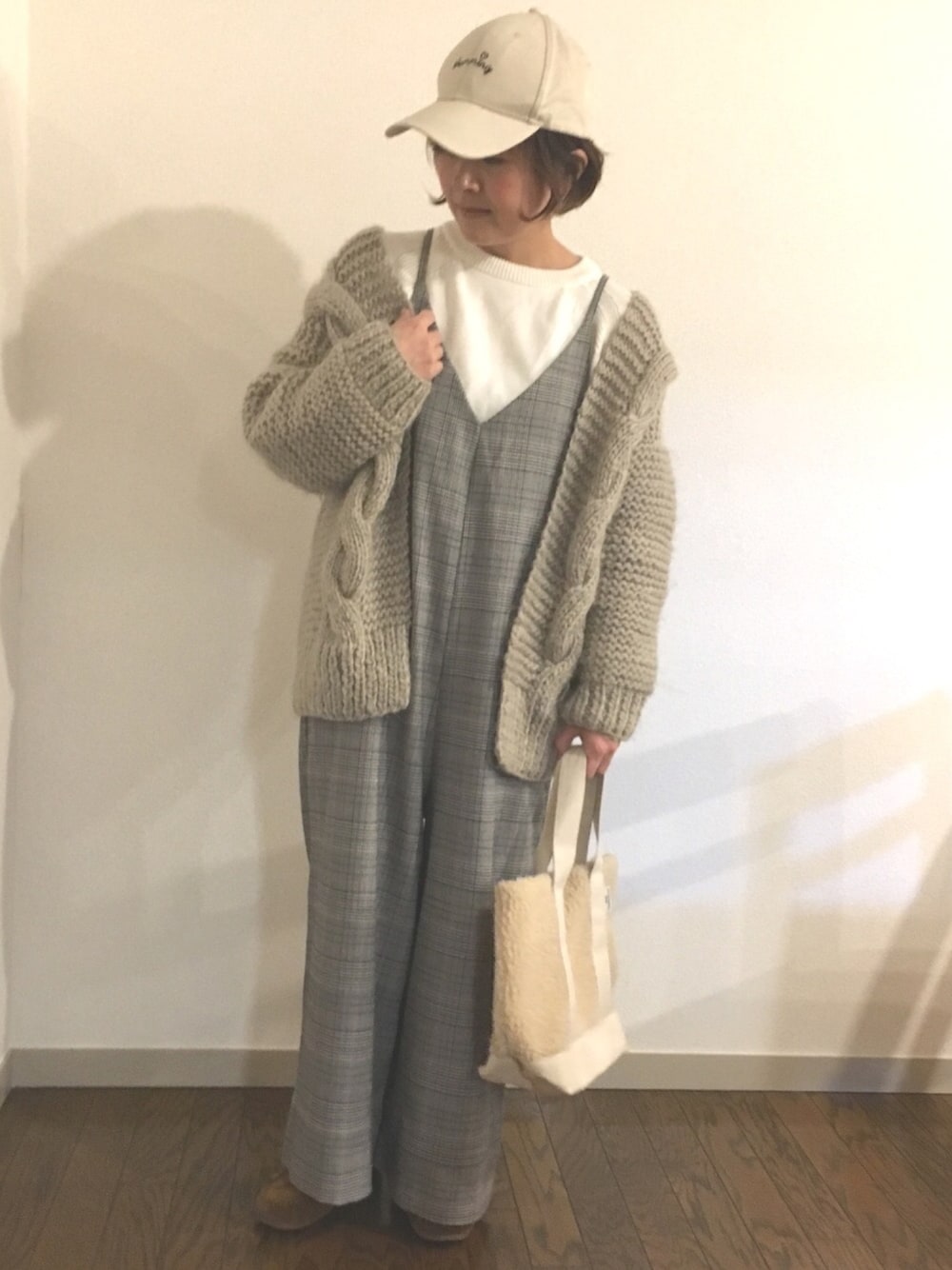 おはようございます😃 ご覧頂きありがとうございます♡ サロペットにざっくりカーデを合わせてキャップでカジュアルダウンさせました。 冬のサロペットはスースーして寒いです❄️笑 いつもいいね👍お気に入り✨フォローありがとうございます😊 泣いて喜びます←