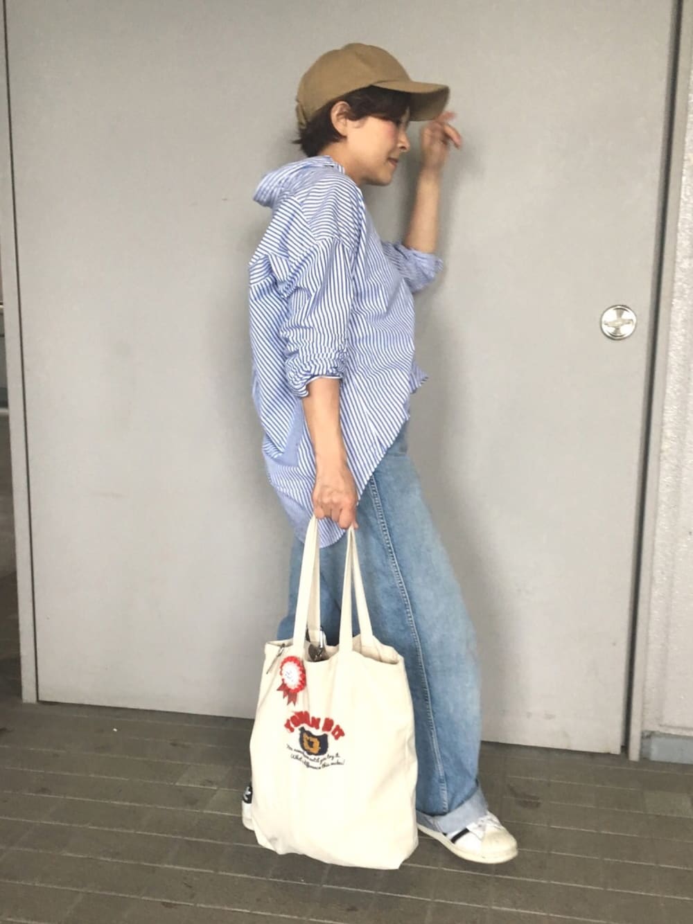 おはようございます☀ ご覧頂きありがとうございます😊 朝から寝癖がにっちもさっちもいかなくて結果キャップで押さえつけてやりました👍 昨日の朝は大雨すぎて、保育園についた時点でデニムがビッチョリ。 なんで私、こんな大雨の日にワイドパンツしかも丈が長いやつ履いてしまったんだろう...と激しく後悔しました😭 というミステイクコーデです。 ユニクロのストライプシャツにユニクロのハイライズストレートワイドパンツ。 (寝癖直し用)キャップをかぶり足元もスニーカー。 シャツがきれい目だけど今日も他のアイテムでカジュアルダウンです。 いいね👍お気に入り✨フォロー✨毎度毎度ありがとうございます🙇♀️ またよければ覗きにきてくださいね! コメントもお気軽にどーぞ! コーデ以外の事でもウェルカムです👍 Instagram▷rumippera1111