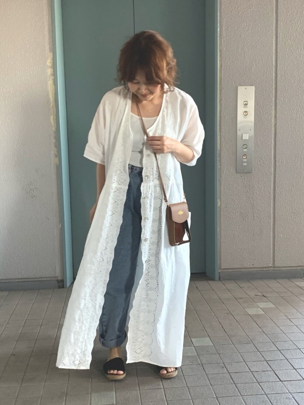 るみっぺのワンピース「刺繍レースカットワークコットンワンピース」を使ったコーディネート