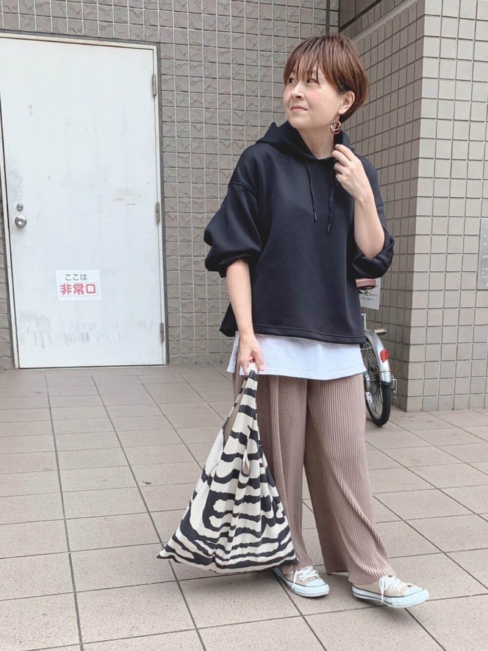おはようございます! ご覧頂きありがとうございます! やっと私も秋仕様笑 グレージュのプリーツパンツはセルフカットできるのですごくいい!とっても履きやすくて気に入りました。パーカーはユニクロで。 バッグはcocaのプチプラだけど収納力も抜群で使いやすいです✨✨ ゼブラ柄が可愛いです。 いつもいいねお気に入りフォローありがとうございます♫
