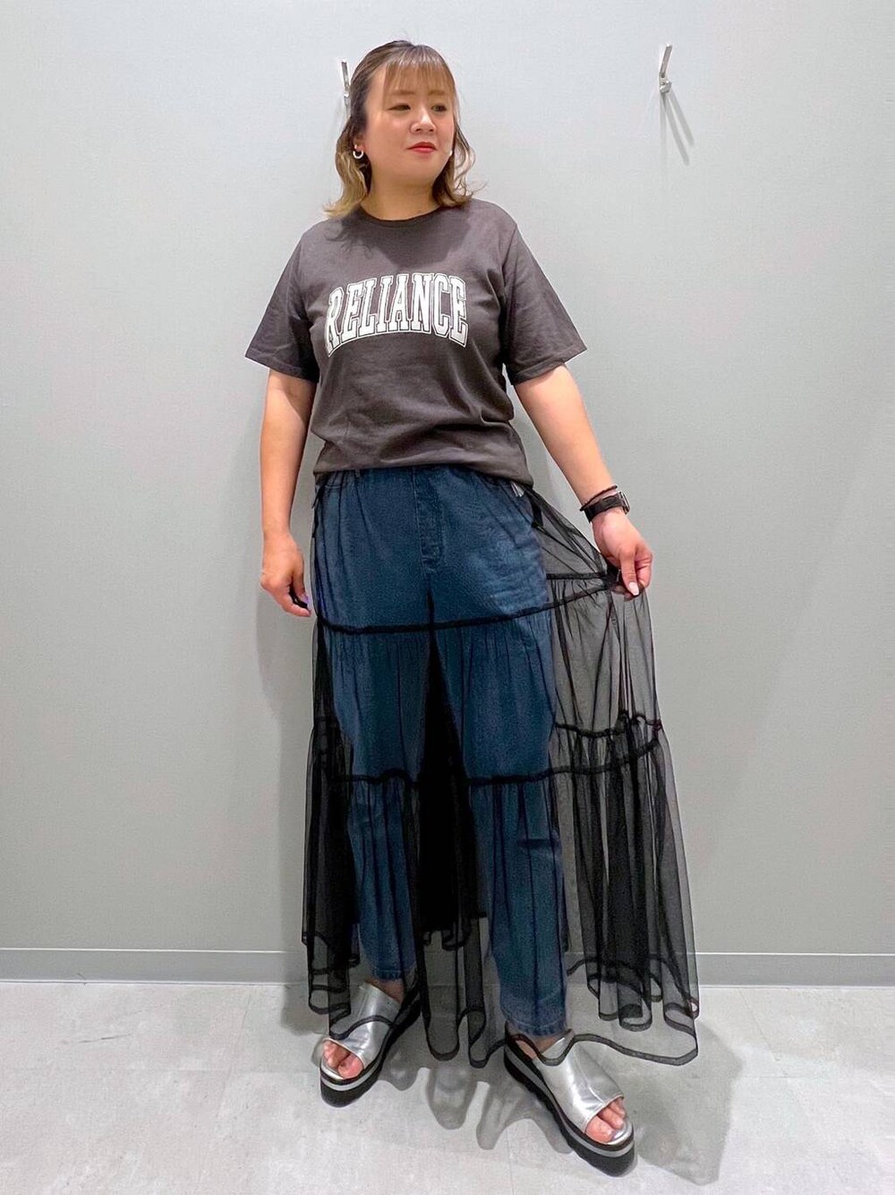 rumi.(GLOBAL WORK Smile Seed Store ゆめタウン飯塚)のTシャツ/カットソー「コットンシンプルプリントTシャツ半袖/175873」を使ったコーディネート