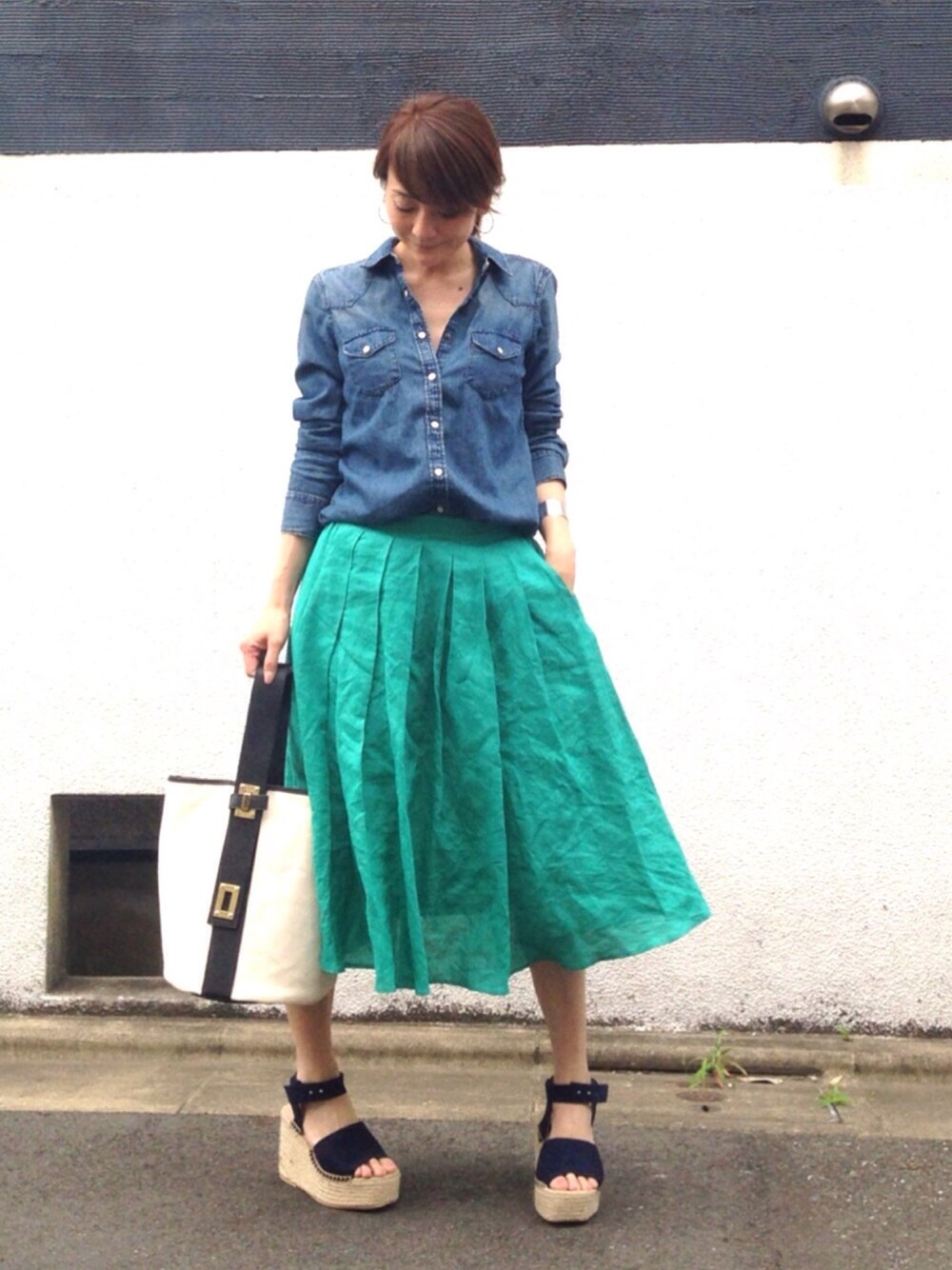 LUMIEのスカート「リネンフレアカラースカート」を使ったコーディネート