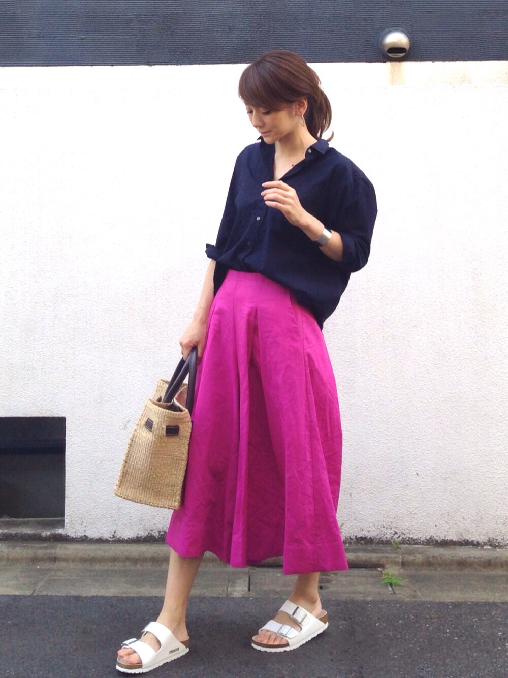 UNIQLOネイビーのオーバーサイズシャツ。本当、何にでも似合うから頼りになります🙆🏻 足元のビルケンでリラックスカジュアル🙈💕💕