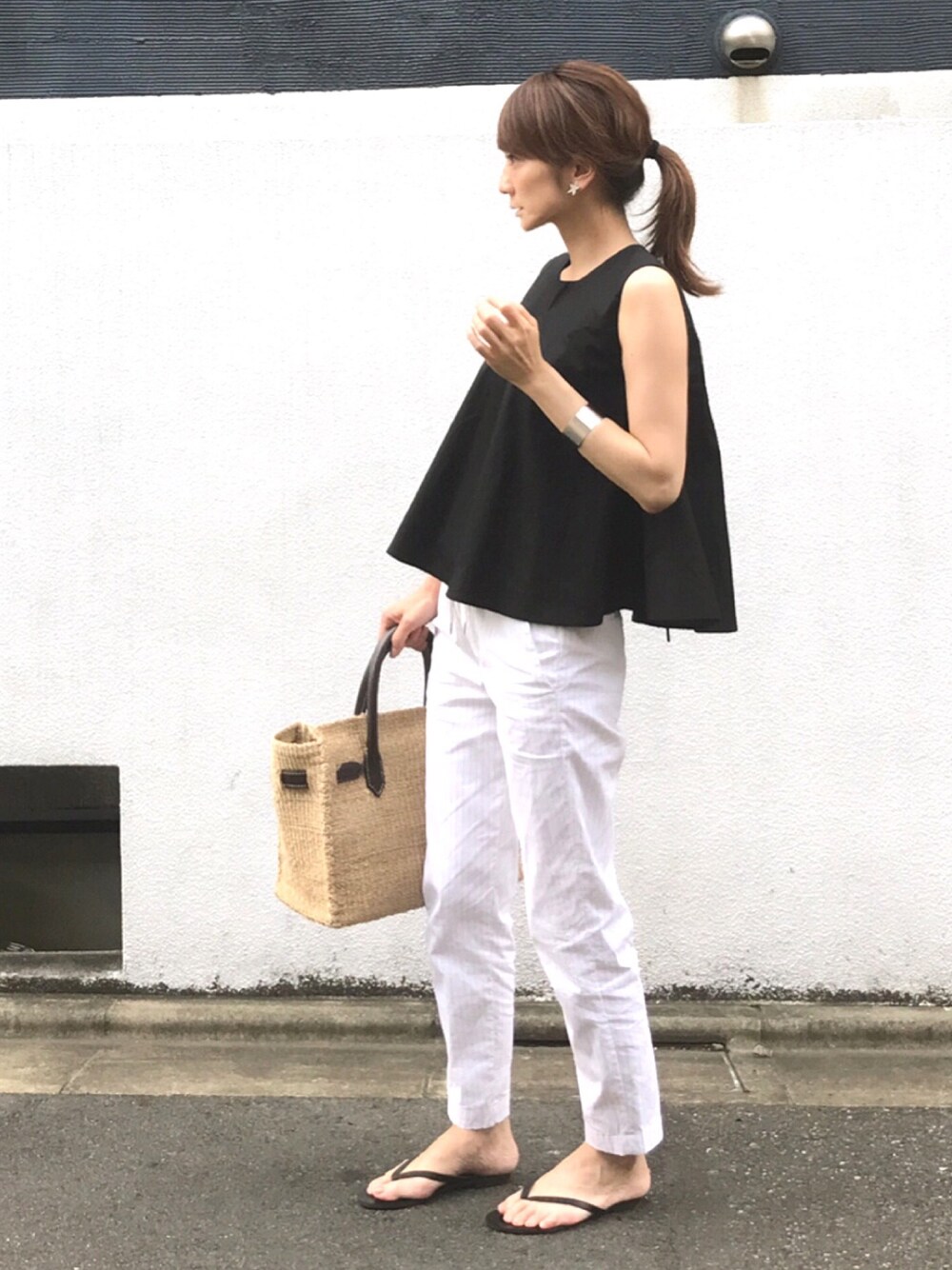 白 × 黒 やっぱり落ち着くモノトーンカジュアル😇 地味コーデには、トップスのAラインシルエットで可愛いさプラス🙆🏻
