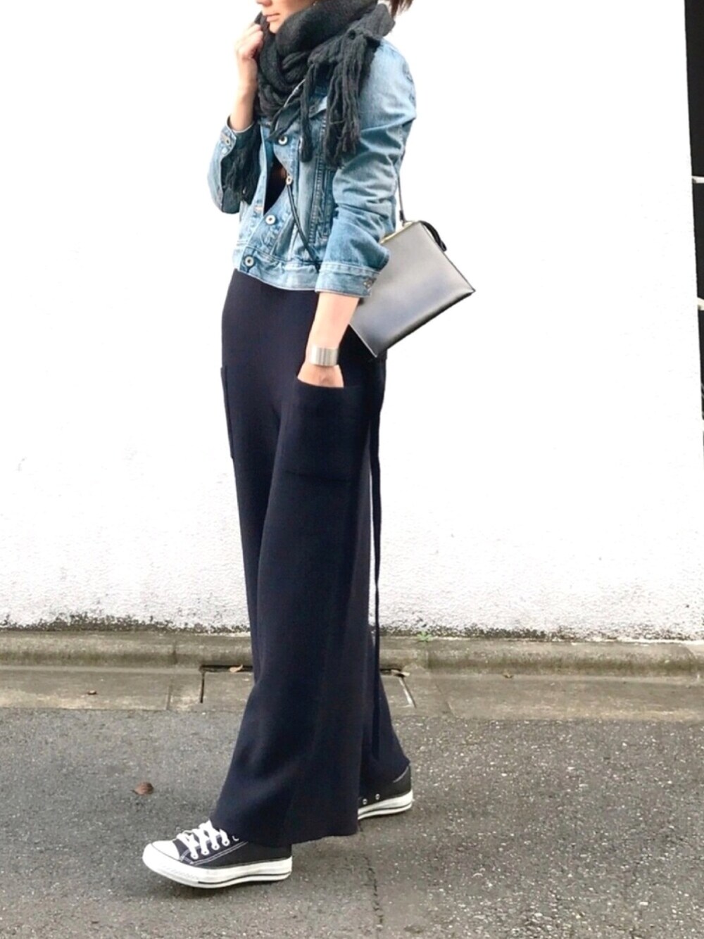 デニムジャケット × マフラーぐるぐる🙋🏻 やっぱり首元があったかいと幸せ😊💕💕