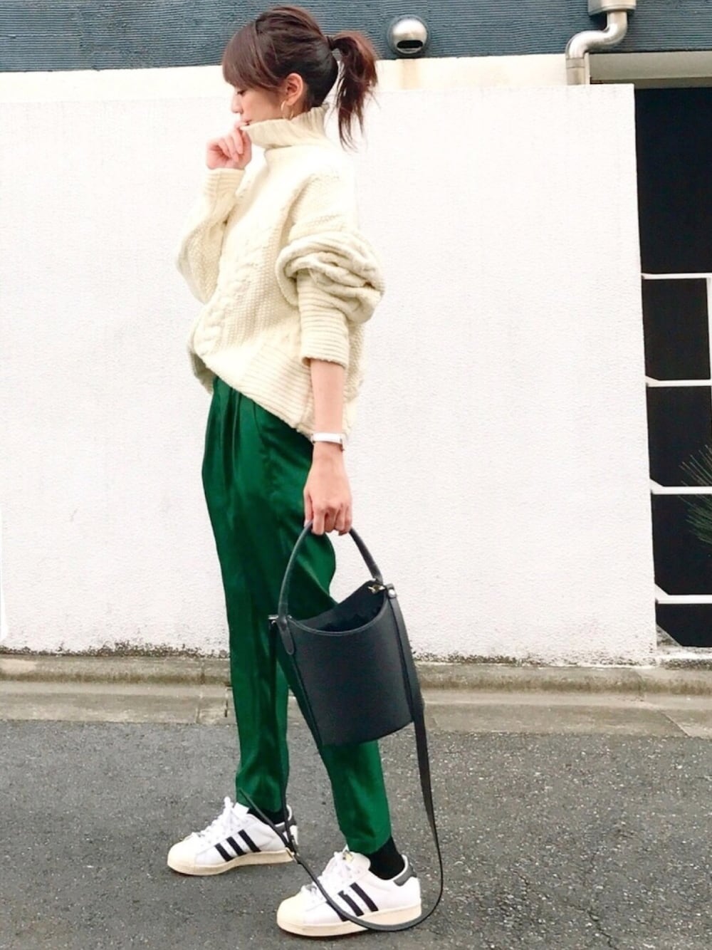 今日のピックアップタグはタートルネックニットだよ🏷 大好きなグリーンパンツと🤢 アウターは黒ダッフルコートです🙆🏻 こちらのニット、プチプラなのにあったかくてこの冬に大活躍中です❤️