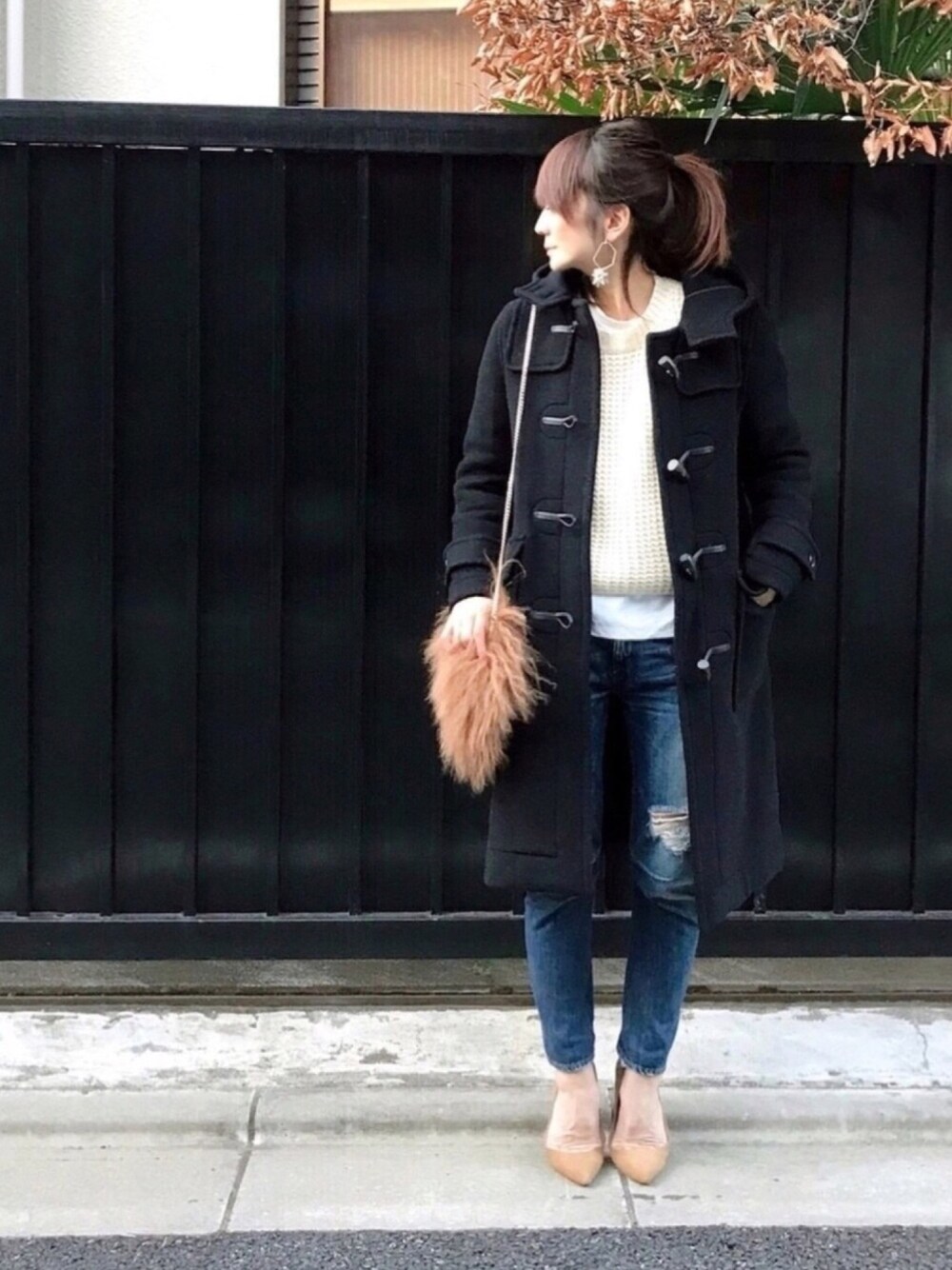 なんてことないコーデですが、、 凸凹な編み目が可愛いニットに、白ブラウスをレイヤードしてるところがポイントです😊💕💕 後は、小物をベージュにしてちょっぴり女っぽく🙆🏻 シンプルカジュアルに大ぶりイヤリングがマイブーム🙌🏻