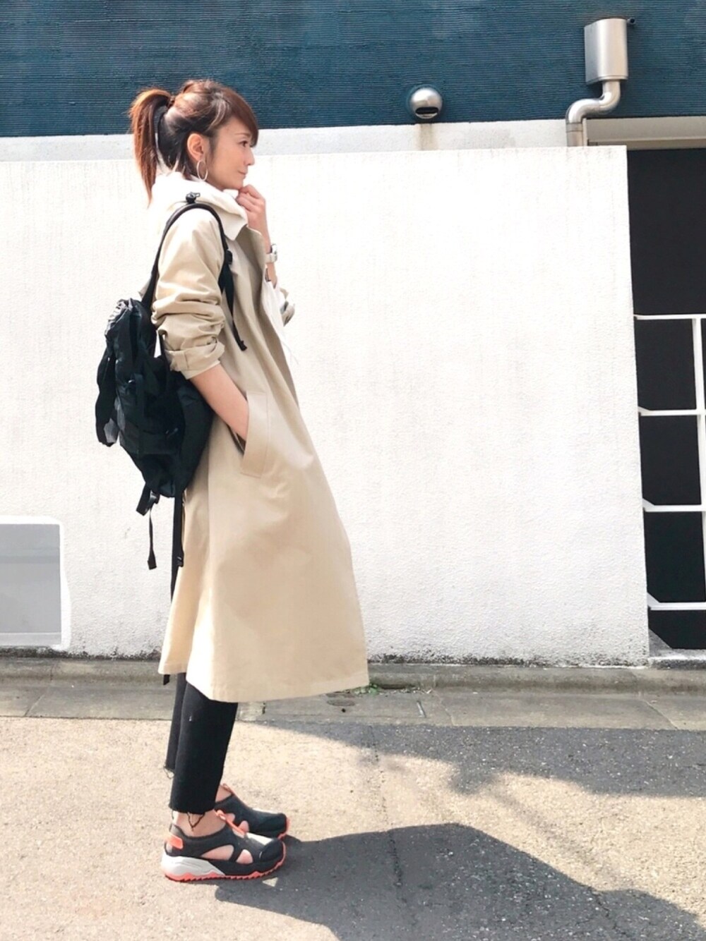 スポーツミックス × トレンチコート モノトーンなスタイルなら、足元で遊んでも😊💕💕