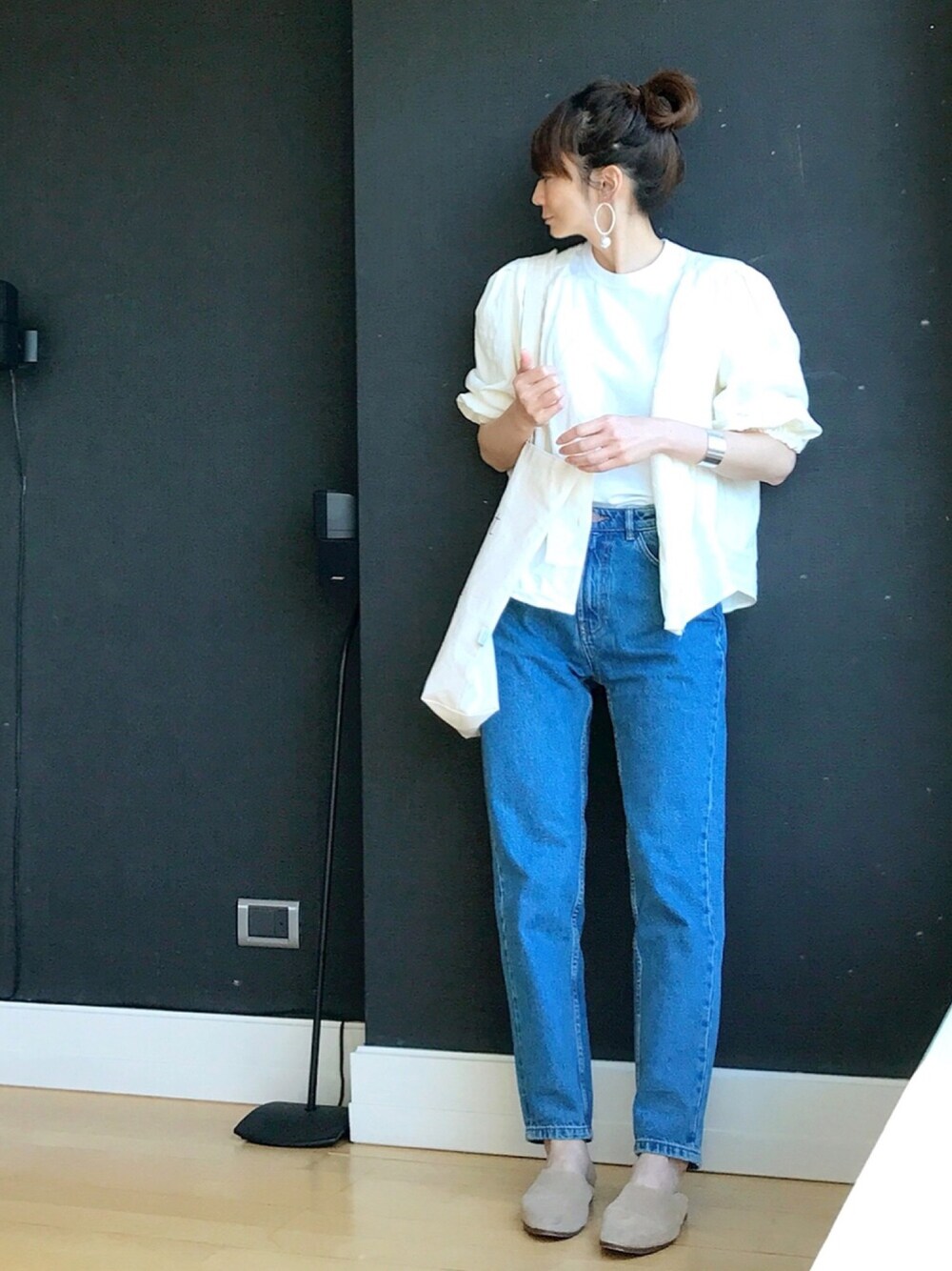 シンプルコーデにお団子 🍡 ZARAのブラウスを羽織りに使ってます😃💕💕