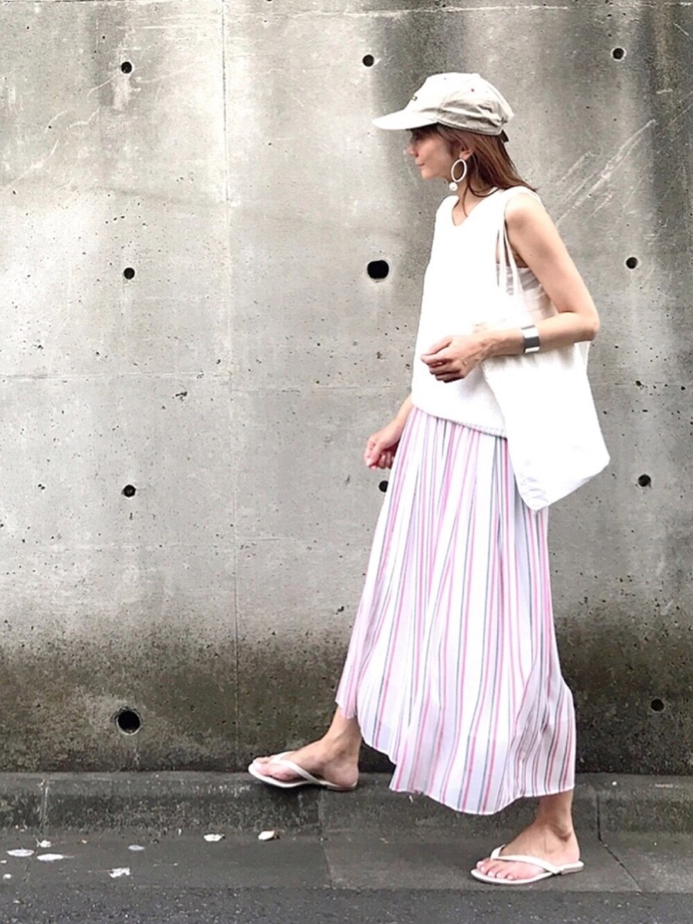 暑い日はスカートが涼しい😆💕💕 キャップの時こそ大振りイヤリングで女子っぽ🙆🏻♀️ 本日こちらのスカートにお使い頂ける 1000円オフクーポンが出ています‼️ しかも夏のSALEで半額になってますので、お見逃しなく🙌🏻