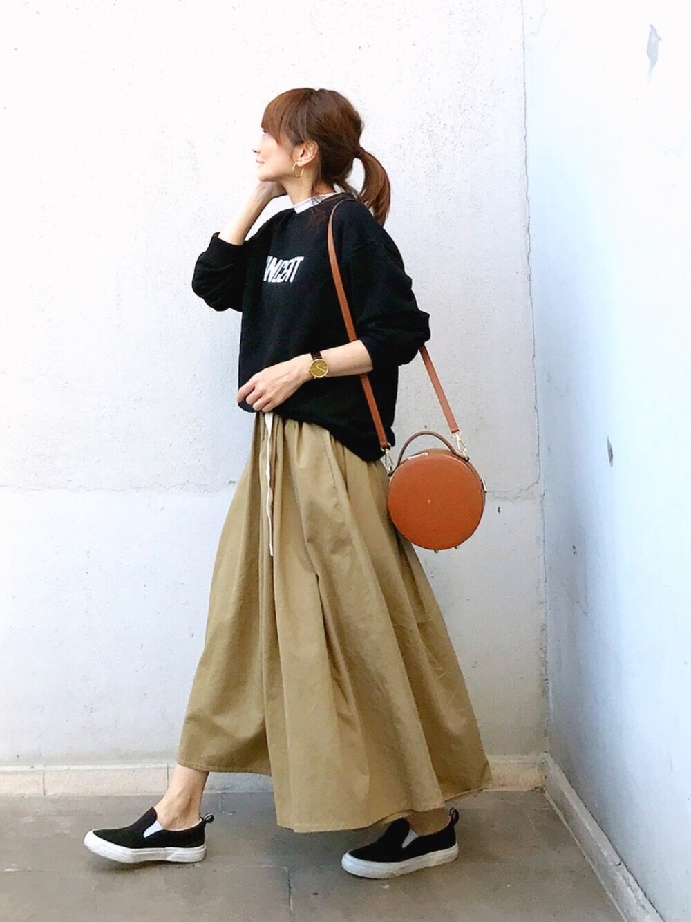 黒 × チノベージュ スウェットのインにレースブラウスをレイヤードしてみました😃💕💕 27日まで green bowl でタイムセール開催中です‼️是非覗いてみて下さい